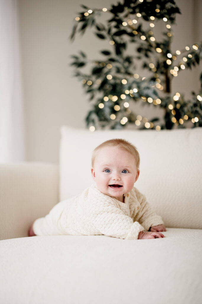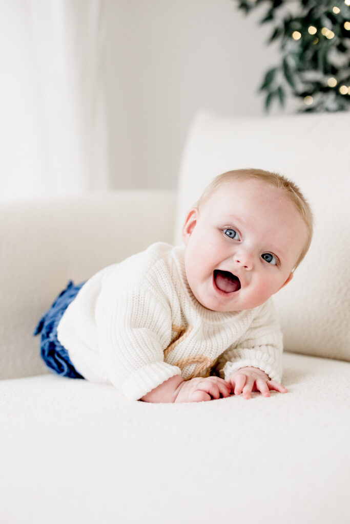By around six months, babies are full of smiles, giggles, and curiosity. A milestone baby session captures these joyful expressions and the little quirks that make your baby uniquely them.