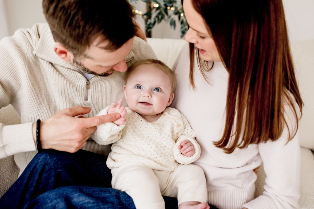 Rather than focusing on sleepy poses, milestone sessions are all about play. Cuddles, games, and laughter help create natural images that reflect real family moments.